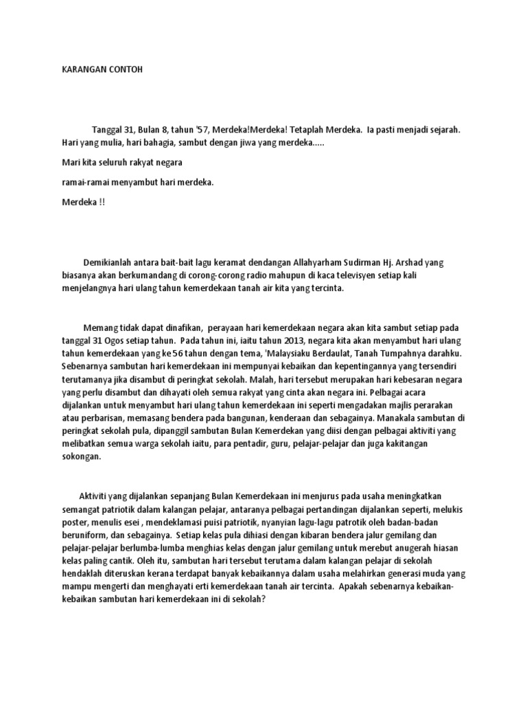 Contoh Karangan Laporan Sambutan Kemerdekaan Peringkat Sekolah Pdf